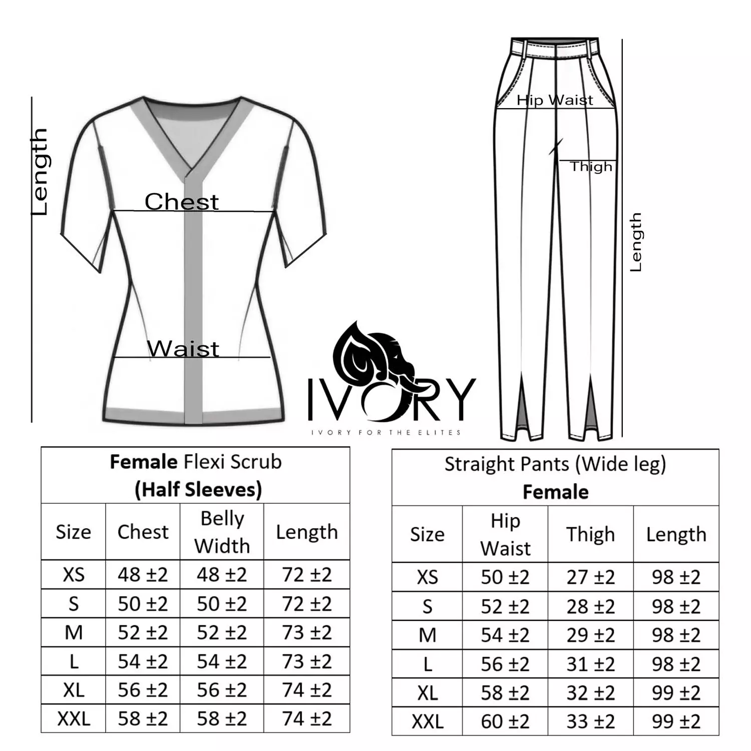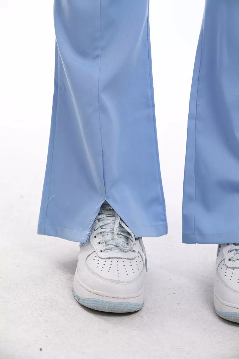 البنطلون: البنطلون ذو قصة ساق واسعة مع حزام خصر مرن وأربطة. يتميز بجيوب أمامية، وجيب خلفي ، وجيب جانبي عند الركبة، وفتحة امامية في القدم.