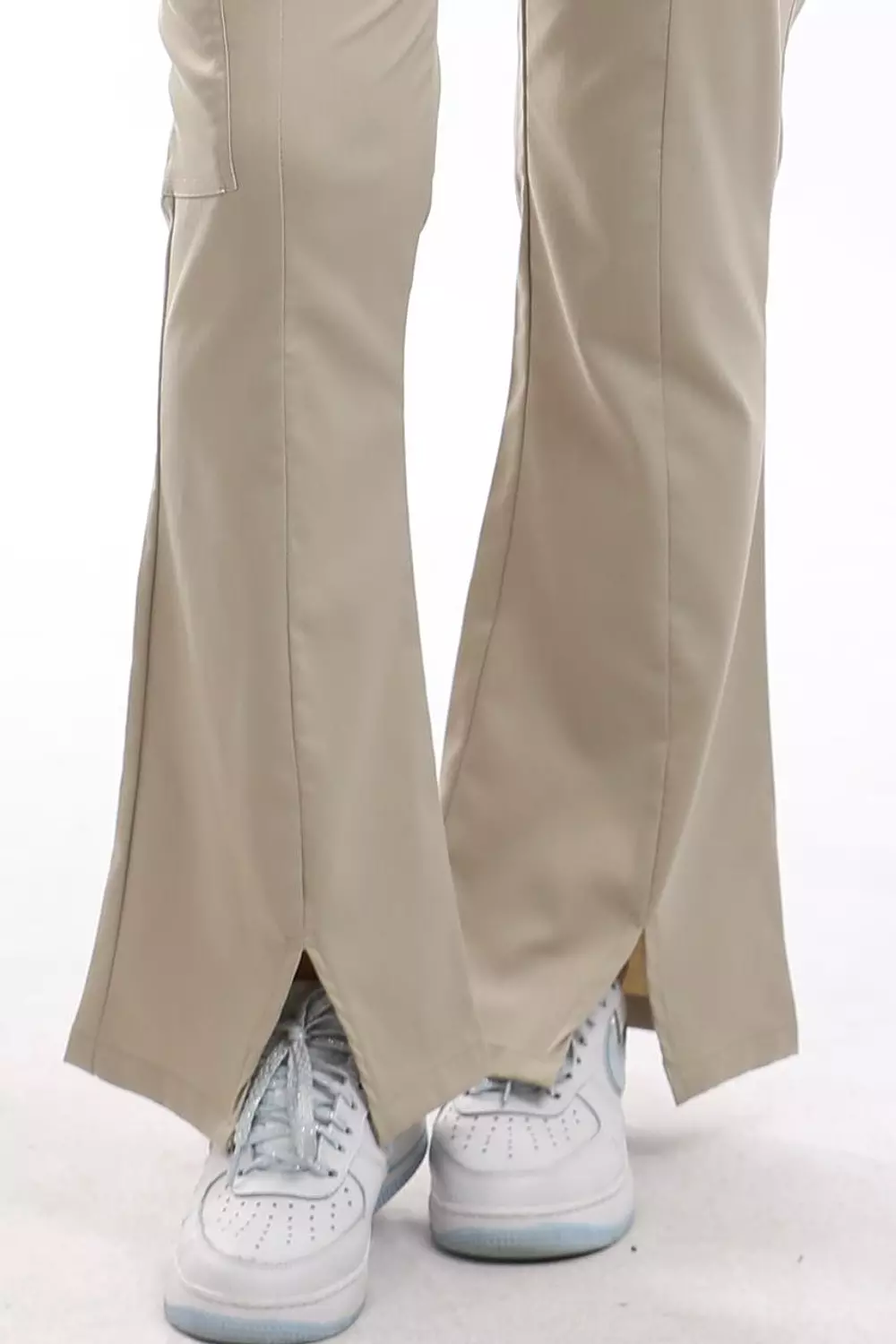 Pants: wide leg Pants shape with an elastic waistband and drawstrings. featuring front pockets, rear welt pocket, side patch pocket and front vent hems