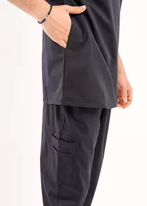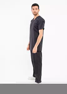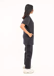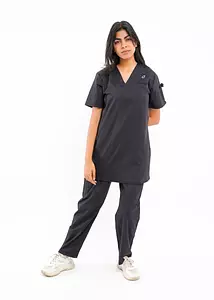 سكراب برقبة على شكل حرف V، يتميز برقبة على شكل حرف V، وأكمام قصيرة، وجيب أمامي على الصدر ، وجيوب جانبية في الوسط ، وفتحات جانبية عند الخصر.