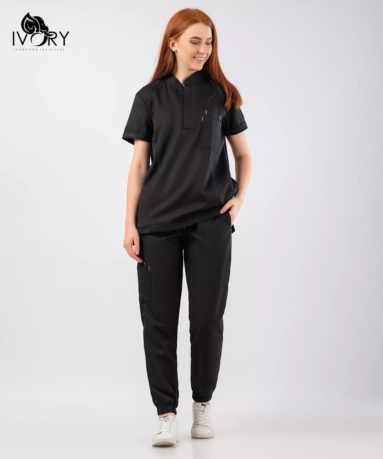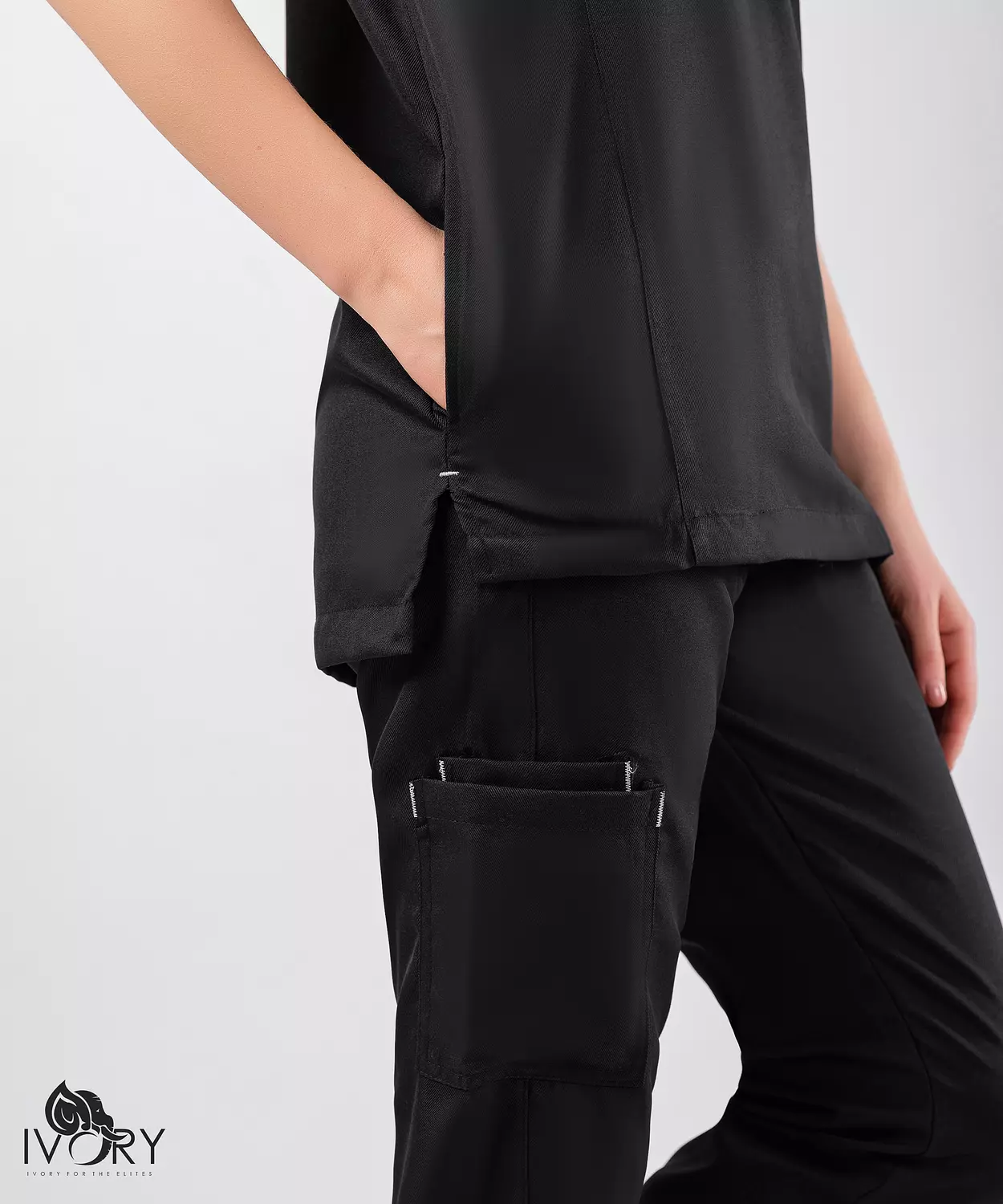 بنطال بأستيك خصر مطاطي و رباط . جيوب أمامية، وجيوب خلفية , وجيوب جانبية , أطراف القدم بأساور مطاطية