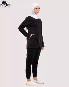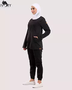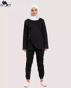 المزايا: سكراب علوي من قماش الليكرا على شكل زهرة التيوليب , جيوب امامية , سحاب على الصدر غير مرئي ,  مريح جدًا للأطباء الذين يعملون بجهد , تصميم سروال فاخر يتميز بجيبين أماميين , اساور مطاطية في القدم بشكل جمالي