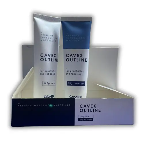 Cavex Outline, Impression Paste Eugenol Free is a material for making impressions of the edentulous jaw. The mixed impression paste flows easily under light pressure, preventing