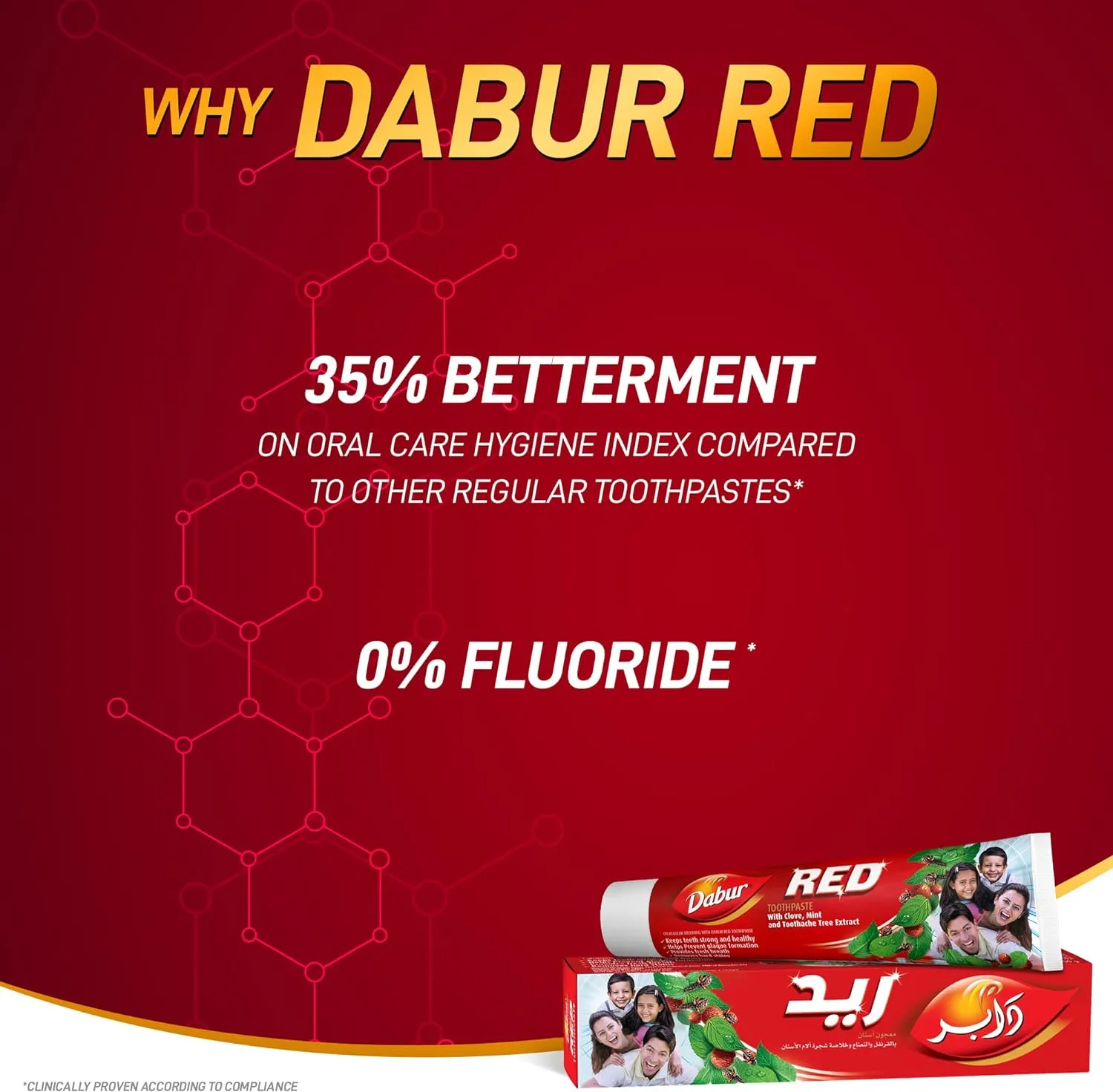 Dabur Red Toothpaste is formulated based on Ayurvedic principles, incorporating natural ingredients known for their dental care benefits.