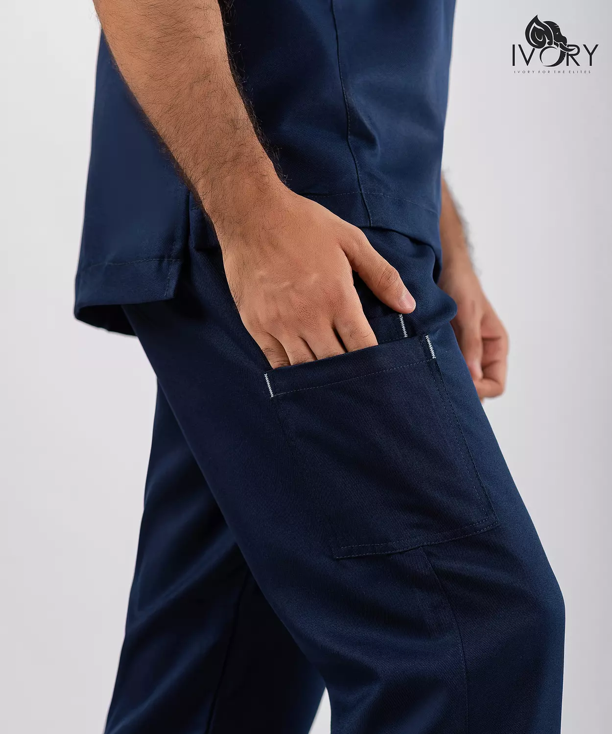 بنطال بأستيك خصر مطاطي و رباط . جيوب أمامية، وجيوب خلفية , وجيوب جانبية , أطراف القدم بأساور مطاطية