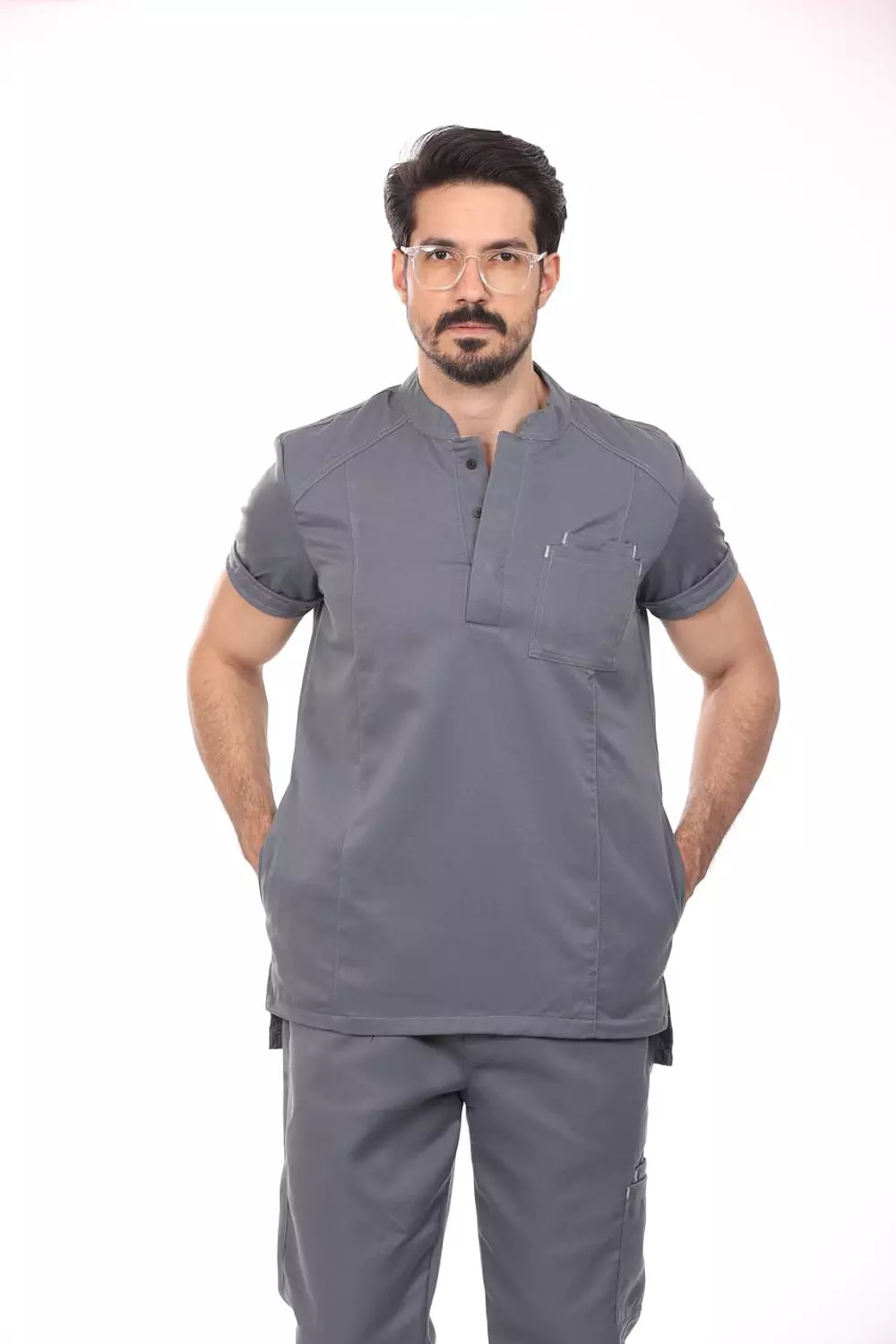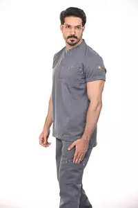 التوصيف: تيشرت نصف ياقة مضاد للانكماش والتجاعيد، يتميز بياقة نصفية، وأكمام قصيرة مثنية ، جيب صدر امامي ، وجيوب جانبية عند الخصر ، وفتحات جانبية عند الخصر ، ازرار أمامية للقفل غير مرئية.