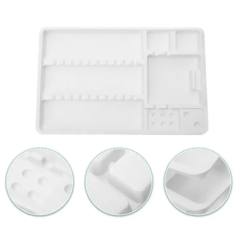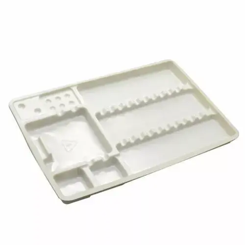 The disposable instrument trays are made of plastic and are available in white or in color.