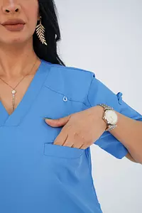 سكراب برقبة على شكل حرف V، يتميز برقبة على شكل حرف V، وأكمام قصيرة، وجيب أمامي على الصدر ، وجيوب جانبية في الوسط ، وفتحات جانبية عند الخصر.