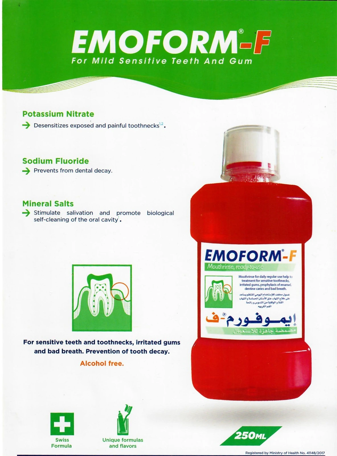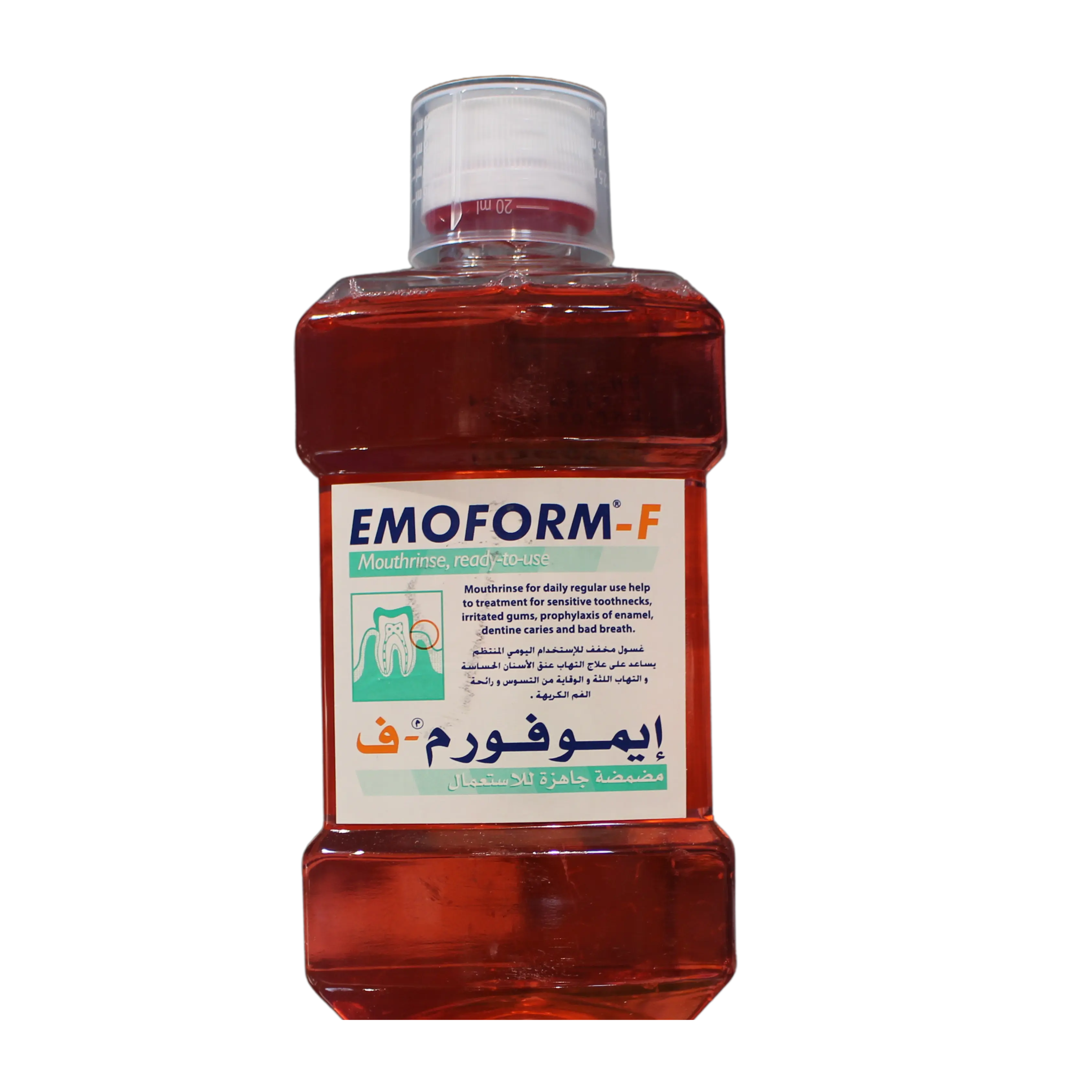 Transform your oral care routine with EMOFORM-F mouthwash, crafted to bring you a refreshing burst of minty freshness while effectively combating plaque and bacteria. Formulated with precision, EMOFORM-F not only freshens your breath but also promotes healthy gums and teeth, ensuring a smile that's as confident as it is radiant. Elevate your daily hygiene with EMOFORM-F and embrace a new standard of oral health care.