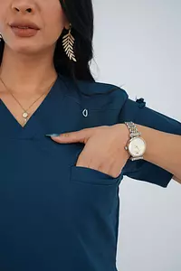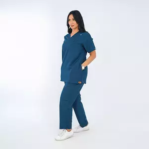 سكراب برقبة على شكل حرف V، يتميز برقبة على شكل حرف V، وأكمام قصيرة، وجيب أمامي على الصدر ، وجيوب جانبية في الوسط ، وفتحات جانبية عند الخصر.