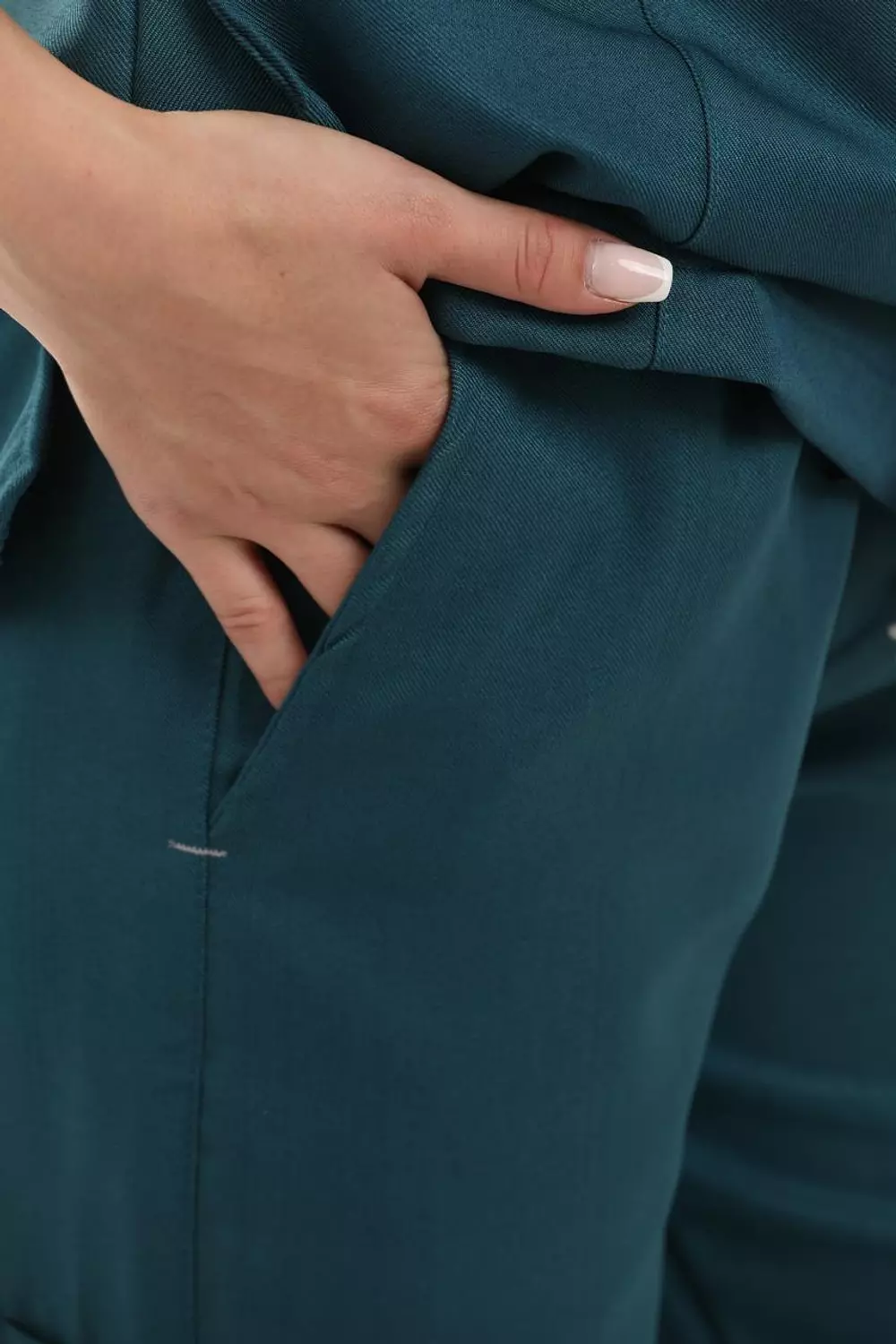 بنطال بأستيك خصر مطاطي و رباط . جيوب أمامية، وجيوب خلفية , وجيوب جانبية , أطراف القدم بأساور مطاطية