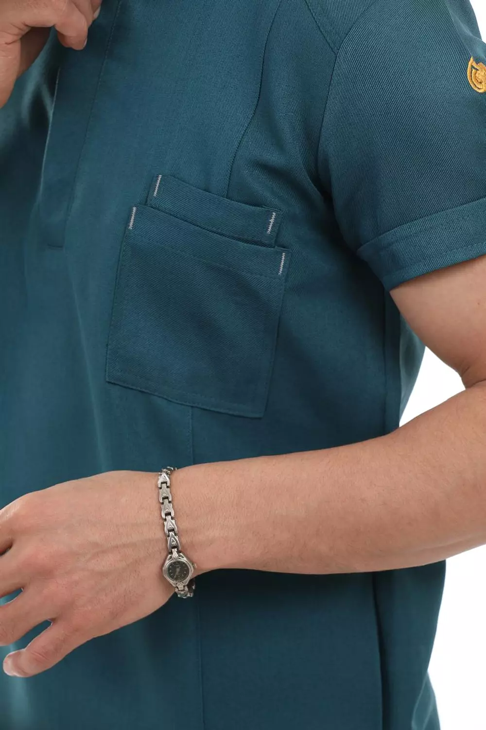 التوصيف: تيشرت نصف ياقة مضاد للانكماش والتجاعيد، يتميز بياقة نصفية، وأكمام قصيرة مثنية ، جيب صدر امامي ، وجيوب جانبية عند الخصر ، وفتحات جانبية عند الخصر ، ازرار أمامية للقفل غير مرئية.