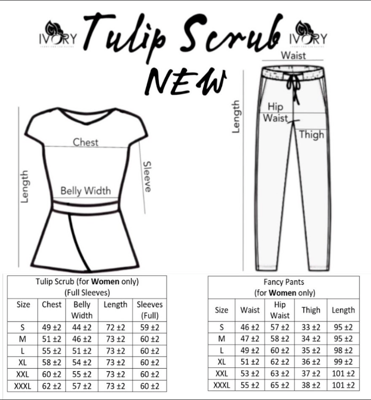 Features: Tulip Cut top Scrub , very comfortable to hard-work Doctors, Fancy Pants design featuring two front patch pockets.