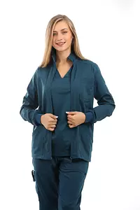 جاكيت برقبة طويلة، تتميز برقبة طويلة، وأكمام طويلة، وجيب أمامي على الصدر، وجيوب أمامية، ومعصم بشريط مطاطي، وجيب على الكتف بسوستة.