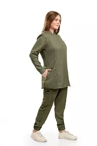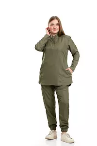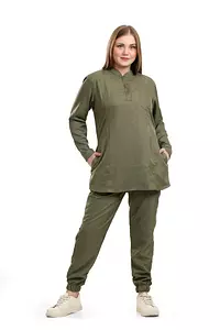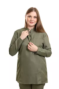 Olive Green Half Collar Scrub Full Sleeve
