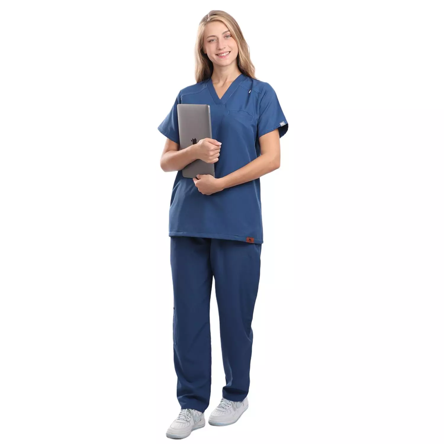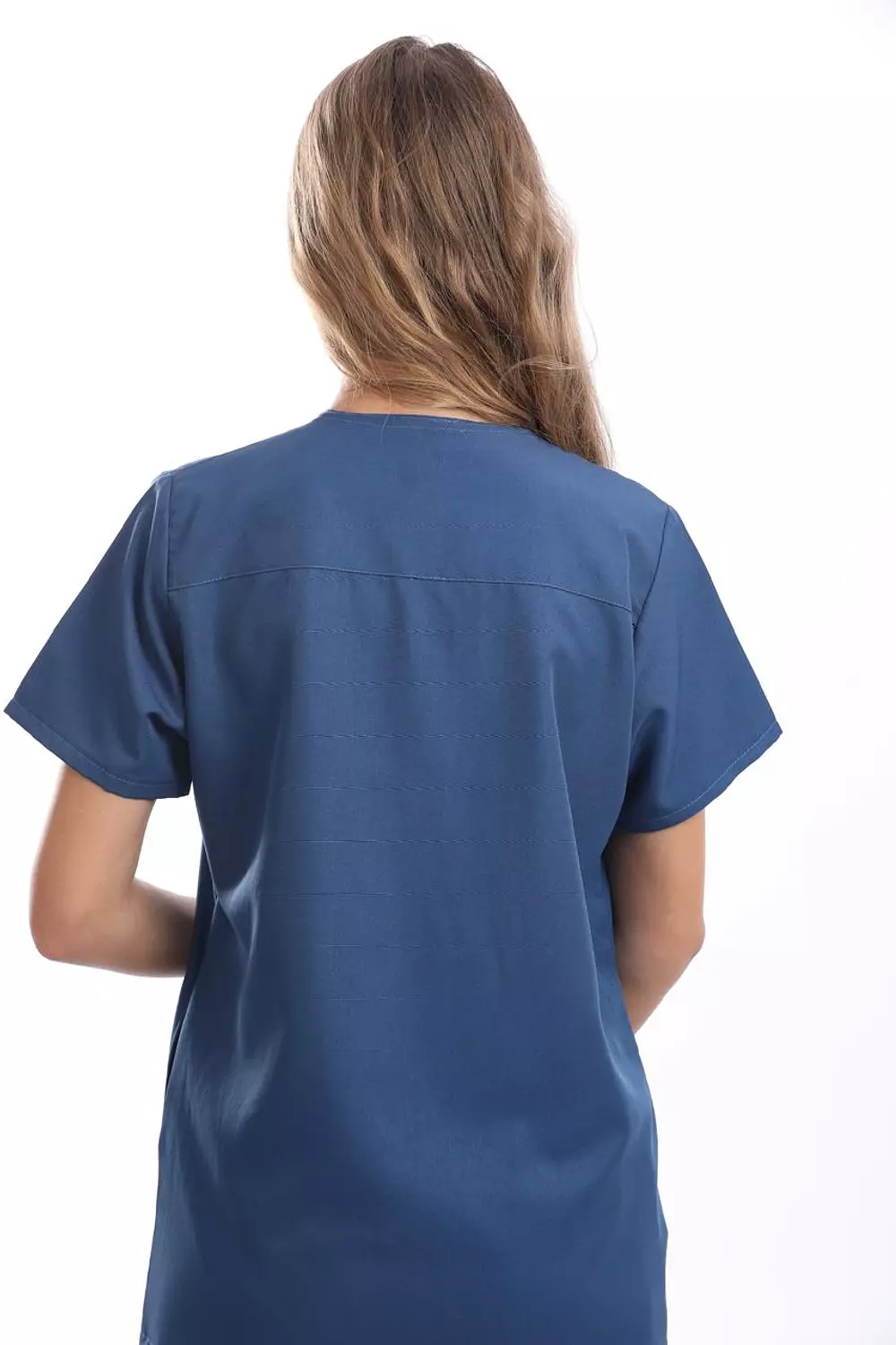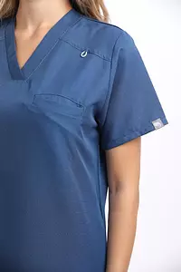 سكراب برقبة على شكل حرف V، يتميز برقبة على شكل حرف V، وأكمام قصيرة، وجيب أمامي على الصدر ، وجيوب جانبية في الوسط ، وفتحات جانبية عند الخصر.