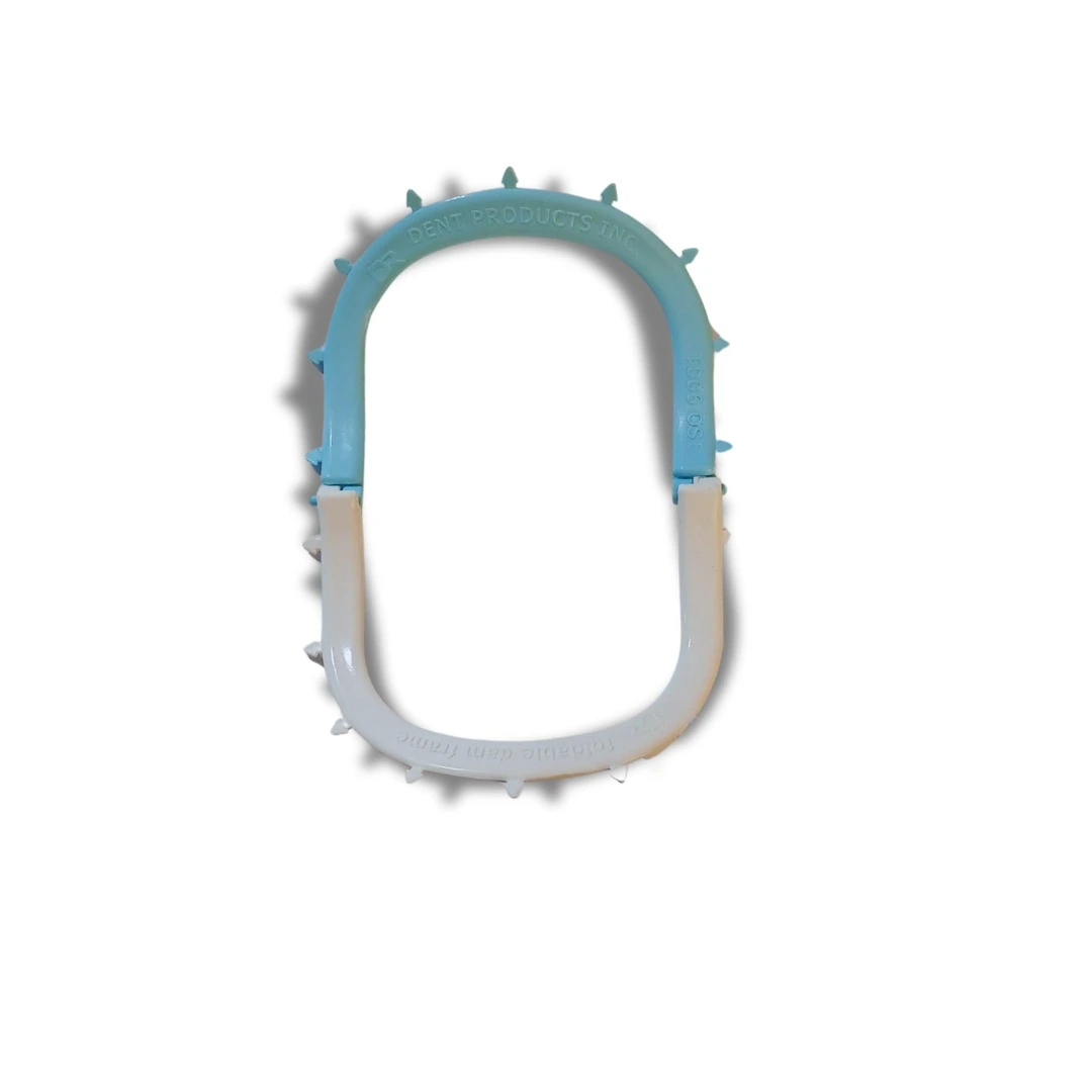 Frames used to maintain rubber dam sheet border stretched to allow better visibility and workability, because of its shape it exerts less tension on the sheet and it is easy to use with its improved grip of the dam