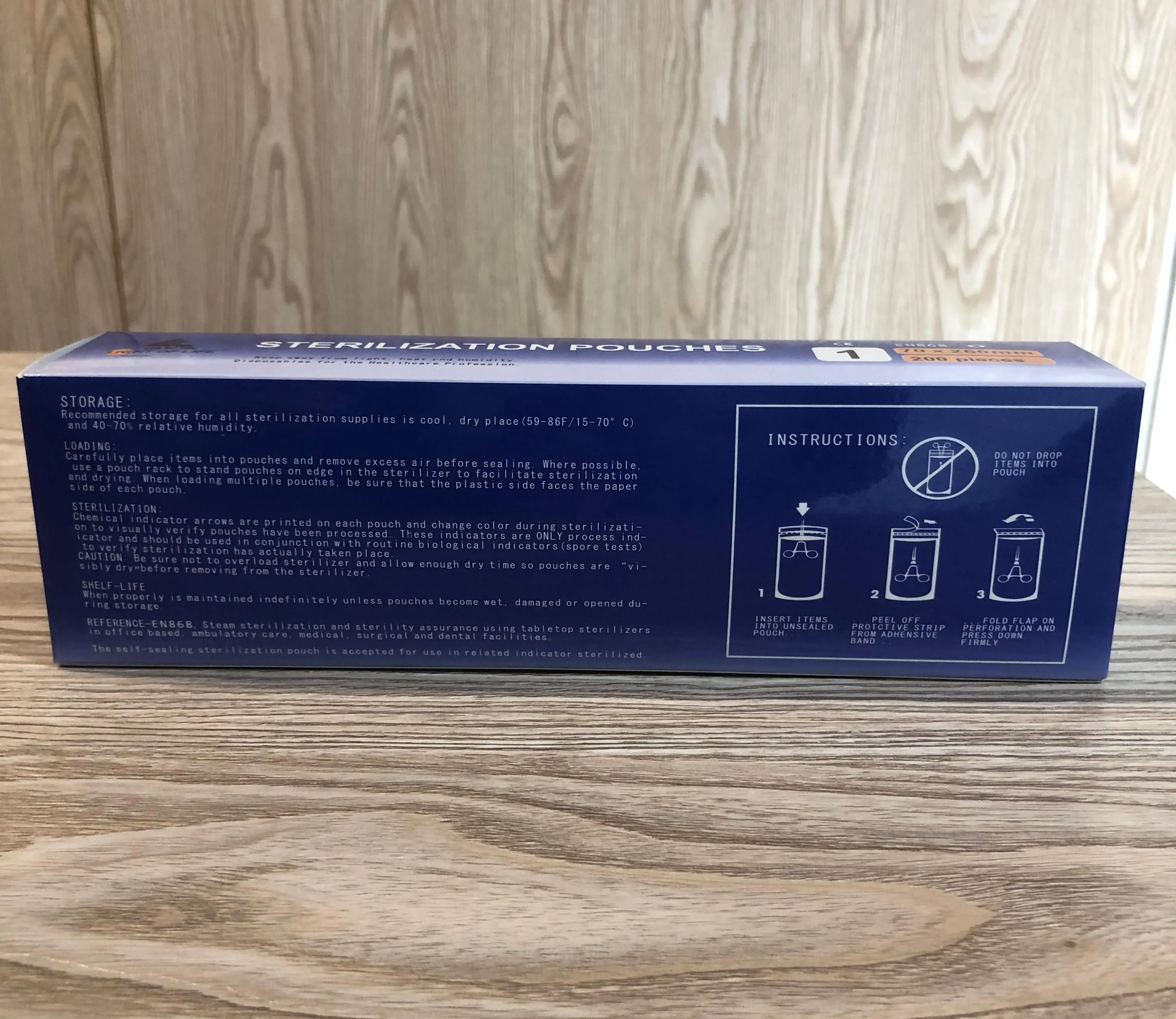 Self-sealing sterilization pouches, 135x260mm in size, are specialized packaging designed for sterilizing medical instruments and equipment. They typically feature a self-sealing adhesive strip to ensure a secure closure without the need for additional sealing equipment. These pouches are crucial in healthcare settings to maintain sterility before use and often come with indicators to show whether sterilization conditions have been met. They are available in various sizes to accommodate different instruments and equipment.