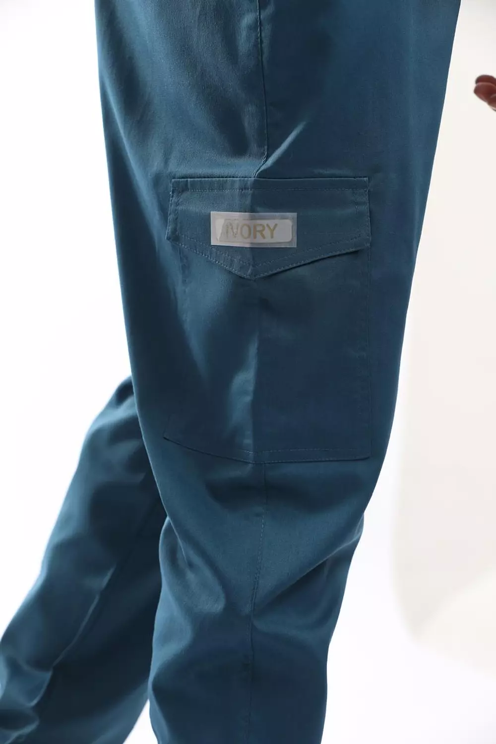 البنطلون: جوقر بحزام خصر مطاطي وأربطة. يتميز بجيوب أمامية، وجيب خلفي ، وجيوب جانبية عند الركبة، وشريط مطاطي في القدم للقدم الخامة:قماش معالج ليكرا بوليستر.