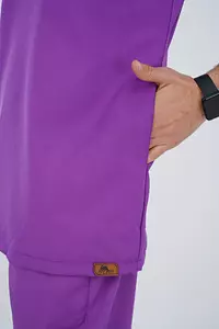 سكراب برقبة على شكل حرف V، يتميز برقبة على شكل حرف V، وأكمام قصيرة، وجيب أمامي على الصدر ، وجيوب جانبية في الوسط ، وفتحات جانبية عند الخصر.